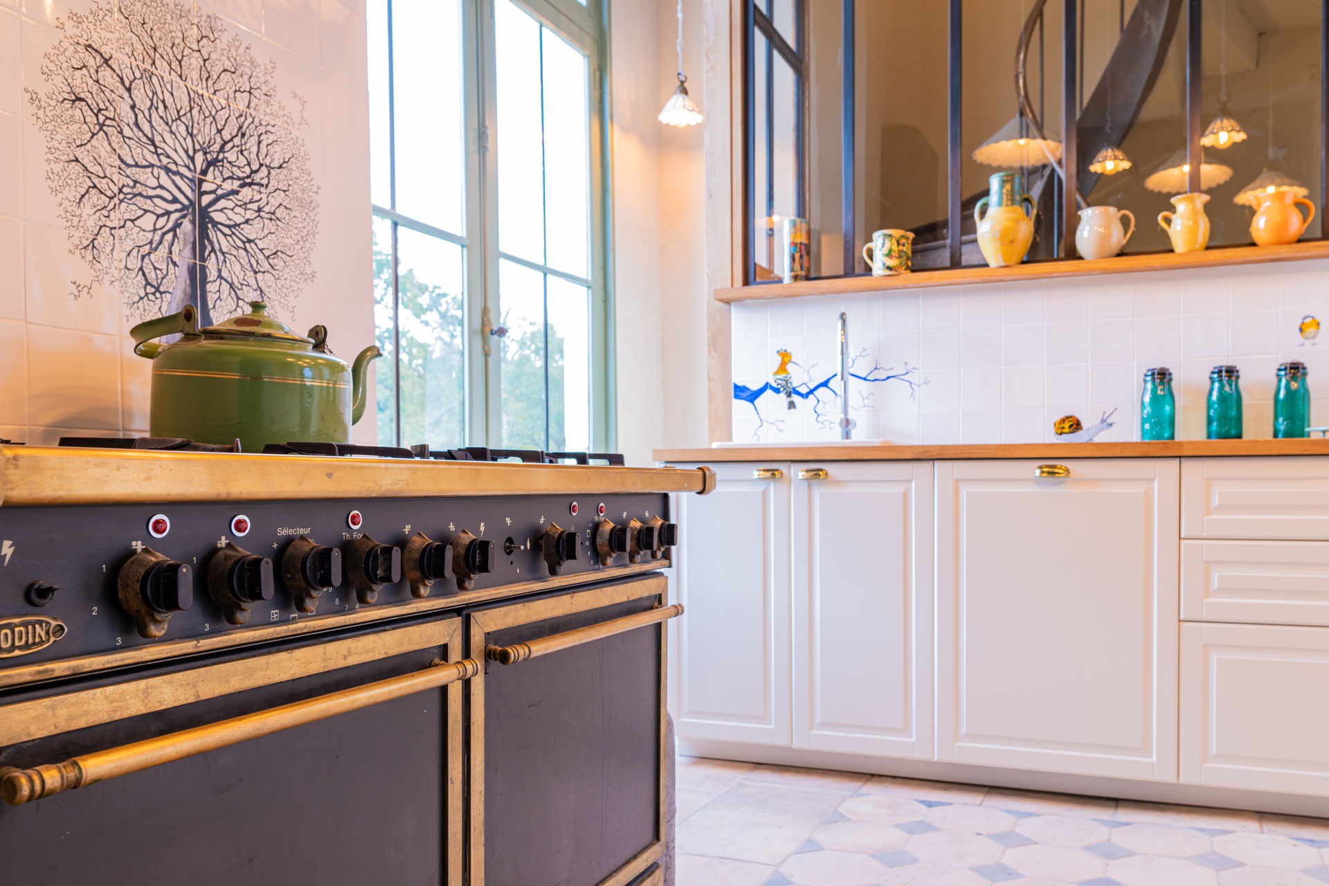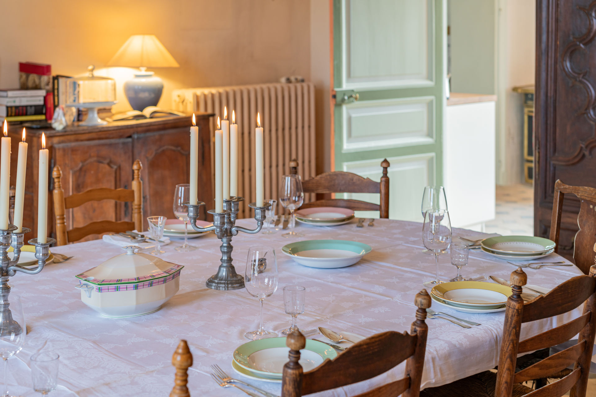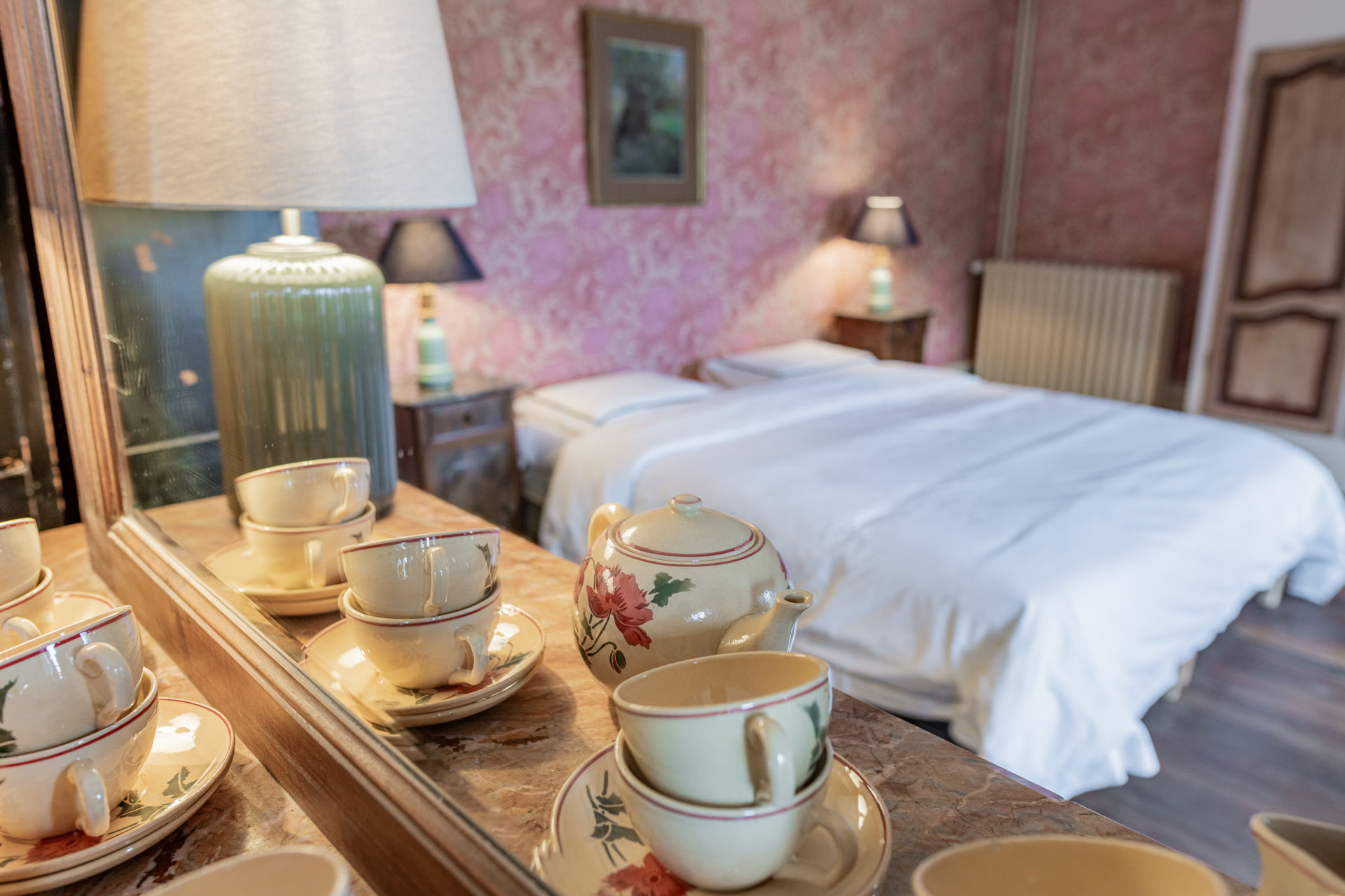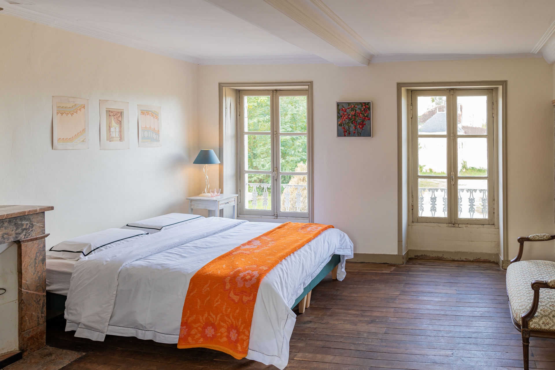 Are you planning to organise a masterclass or group activity at Le Grippault? You can rent the estate on a weekly basis. In the right and central wings of the château, we can host 8 to 15 guests in eight bedrooms, each with an en-suite bathroom. The comfortable rooms have been tastefully refurbished. The charming dining room,  salon, grand hall, renovated kitchen, and the expansive garden with a natural pool, hot tub as well as our enchanting forest will all be at your disposal. Every space has been decorated with objects from our families and things that we have found on one of our region’s amazing brocantes.